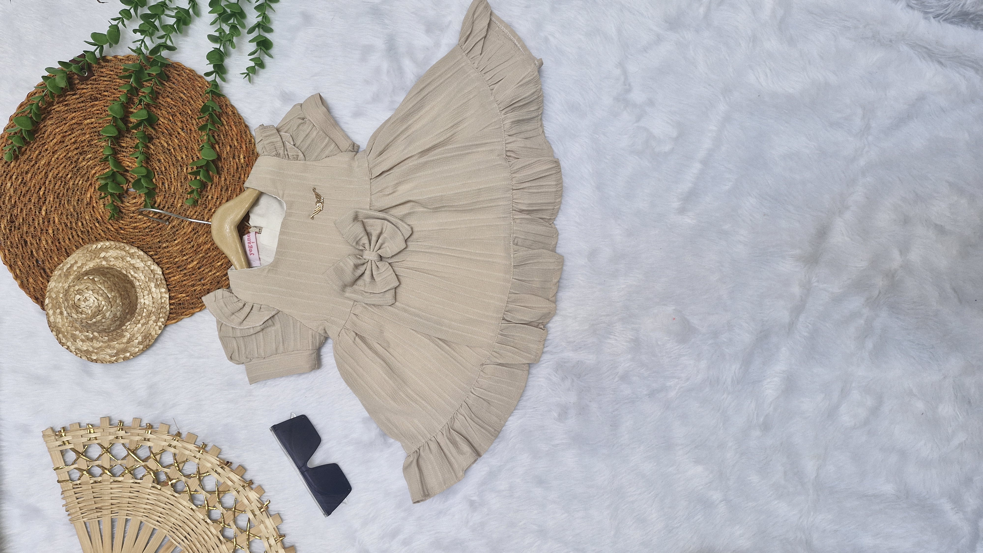 پیراهن دخترانه چین دار همراه باکیف نقلی جنس نخ
